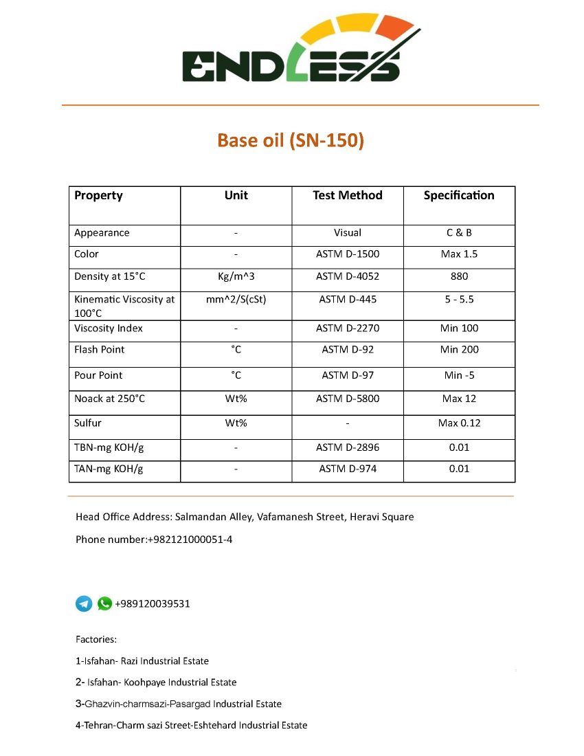 روغن پایه sn150 اندلس با کیفیت بالا و استانداردهای جهانی از پالایشگاههای معتبر تأمین میشوند. این محصولات با فناوری پیشرفته تولید شده و پایداری و کارایی فوقالعادهای دارند. با تحویل سریع از گمرک سلفچگان و هزینه حمل مقرونبهصرفه، بهترین انتخاب برای خرید عمده شماست. به اندلسس اعتماد کنید و خریدی مطمئن را تجربه کنید!