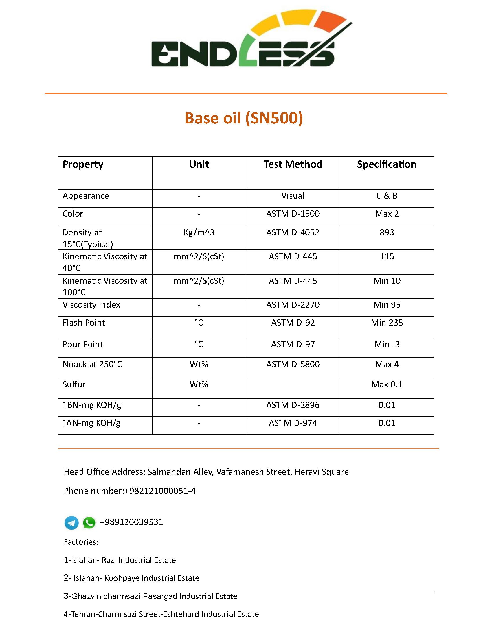 روغن‌های پایه SN500 ما از تولیدکنندگان معتبر ایرانی مانند شرکت نفت سپاهان و ایرانول تأمین می‌شوند و مطابق با استانداردهای بین‌المللی هستند. این روغن‌ها در انواع Recycle، Thinfilm و Virgin برای پاسخگویی به نیازهای مختلف، از فرمولاسیون‌های اقتصادی و سازگار با محیط‌زیست تا روان‌کننده‌های با کارایی بالا، عرضه می‌شوند. با لجستیک کارآمد از گمرک سلفچگان و قیمت‌گذاری رقابتی برای خرید عمده، ما تأمین مطمئن و مقرون‌به‌صرفه‌ای را برای کسب‌وکار شما تضمین می‌کنیم.